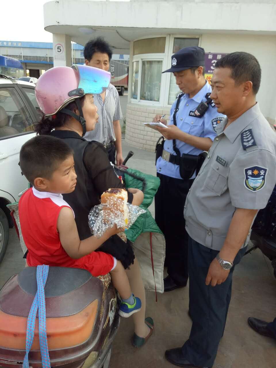 朱军回忆说,当时看到孩子独自走路上太危险,便让蔡金华上前询问,自己则向队长姚玉清汇报此事。姚玉清知晓情况后,让朱军、蔡金华跟着孩子,一是保护孩子的安全,二是看看孩子的家长是否就在附近。两人走了200米发现没有家长,果断将孩子抱到附近申通快递值班室,并给孩子买了零食。在问不出有用信息后,朱军报了警。一分钟后,一位六旬老人认出男孩是附近一家幼儿园的学生。不久,民警和幼儿园老师赶到将孩子带回了幼儿园。