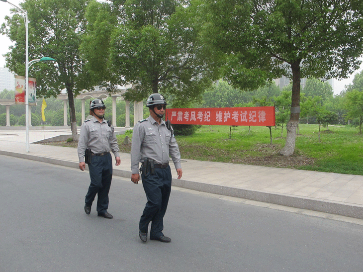 目击二:考点内、保安加强巡逻巡视、站位站点、岗位值守,真正做到考点环境肃静、氛围浓厚、安全保障到位、服务周到,秩序井然,切实为高考的顺利进行保驾护航!
