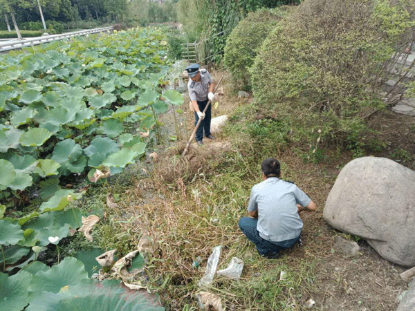 ●9月6日上午,亭湖区政府中队开展清除“死角”环卫活动,队员们对卫生间各个角落进行集中打扫,对荷花池塘周边的杂草进行了全面清理。此次“死角”环卫活动中,保安员们尽心尽力、齐心协力为区政府的环境卫生贡献自己的力量。