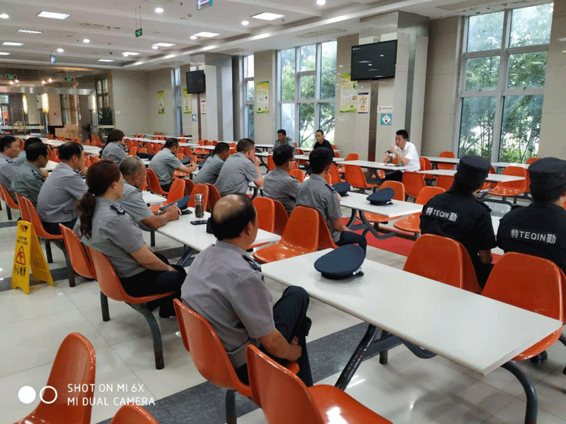 ●9月16日下午,我司集中城南新区、开发区、盐都区的校园保安在敬贤路实验学校进行业务培训,保安部蔡云生大队长主持了这次会议。
