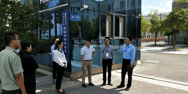 ●9月26日上午,城南社事局带领公安、消防、食品药监部门对伍佑小学的安全工作进行了全面检查。我公司驻伍佑小学保安中队长陈福楼首先就学校保安岗位职责、工作流程、校园周边环境、上放学护导、视频监控等安全保卫工作向社事局领导等一行人员作了详细的汇报。后相关领导查看了保安门卫值班登记簿、来访人员登记簿、保安员持证情况等基础台账,伍佑小学保安分队各类基础台账填写规范,建立健全,检查领导一致表示满意。