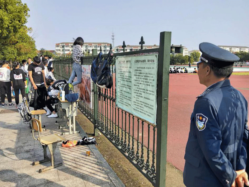 ●10月7日上午,公司驻点单位伍佑中学召开秋季学生运动会,门口当班队员与现场加班保安员联动,维持秩序,确保校运会圆满成功。