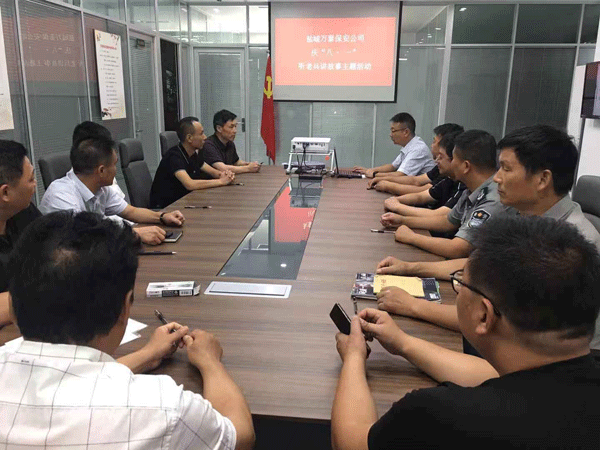 ●在“八一”建军节到来临之际,为学习贯彻习近平总书记关于退役军人工作重要论述,营造全社会尊崇军人、关心退役军人的良好氛围。盐城保安服务有限公司组织召开庆“八一”老兵代表讲故事座谈会,来自公司不同年龄、不同岗位、不同单位的复原退伍军人代表欢聚一堂,为公司发展积极建言献策、畅所欲言。