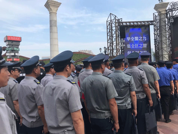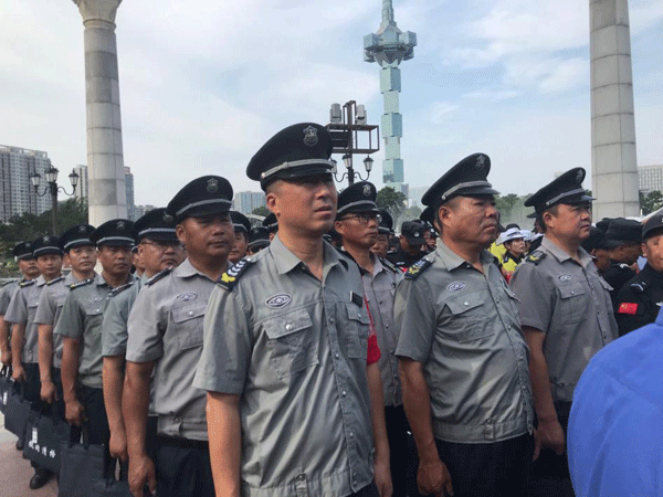 ●8月2日上午,“践行新使命,忠诚保大庆”主题宣誓在欧风花街举行。王市长就做好70周年国庆安全保卫工作提到几点要求,我公司选派20名精干力量保安员参加此次宣誓仪式。