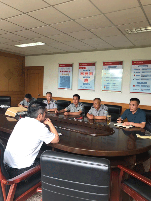 ●8月14日,保安部在敬贤路小学召开中分队长例会。会上,大队长蔡云生总结了七月份的保安工作情况,同时,对当前梳网清格,岗位安全、创文推进、全诚信服务等和下一阶段的工作任务提出了要求。