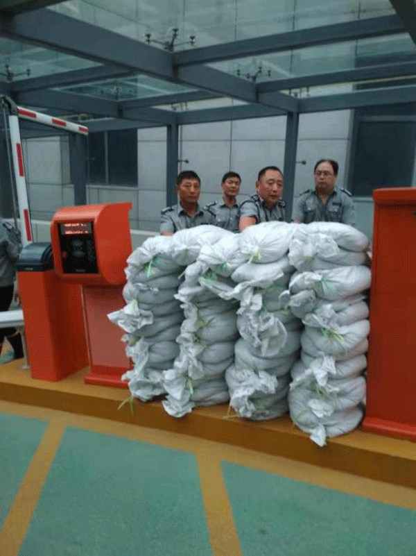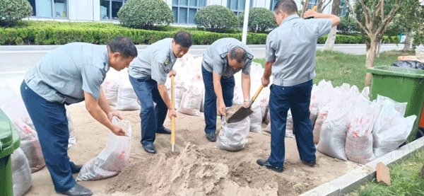 ●8月10日上午8时,我司驻电力营训中心保安中队全体队员为应对利奇马台风,安保人员24小时岗位值守,积极应对,提前搬运沙土,安装临时挡水板。在防台防讯期间,确保客户单位地下车库车辆、配电房等重要设备安全。