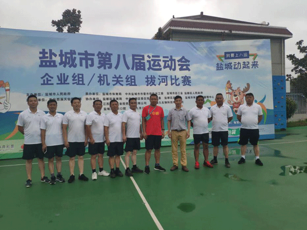 ●8月11日,我司参加盐城市第八届运动会全体队员在支部书记宋云亮同志的带领下出征第八届运动会企业组拔河比赛。队员们在赛场上努力拼搏,斗志昂扬,用激情与汗水展现着万泰人顽强不息、团结一心的精神风貌,这是我司第一次组团参加市运动会。