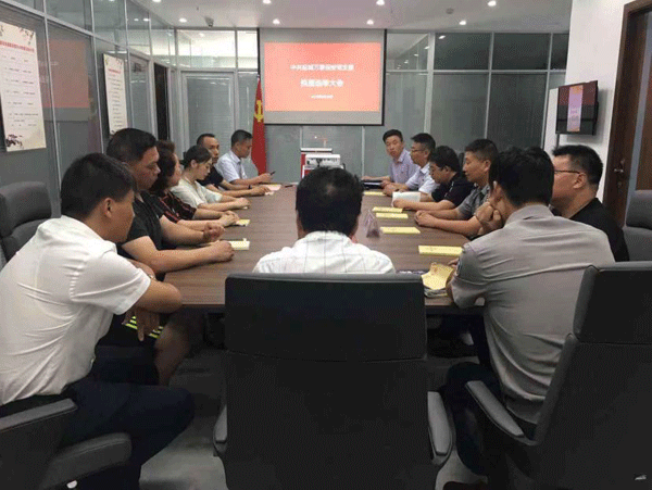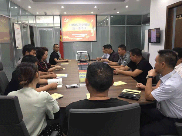 ●8月20日,公司党支部开展基层党组织统一活动日学习,会议上开展“五提前五在先”预热“不忘初心、牢记使命”主题教育活动,支部书记要求严格规范佩戴党员徽章工作,加强仪式感教育,会上提出:要进一步增强文明单位创建意识,加强组织领导,夯实创建工作责任,推进创文工作深入;会议要求:利用道德讲堂,开展好诚信服务教育;开展好全员学习、读书分享活动:会议强调,利用学习强国平台,提高学习活跃度;最后就重点做好支部换届选举工作作了分工部署等要求。