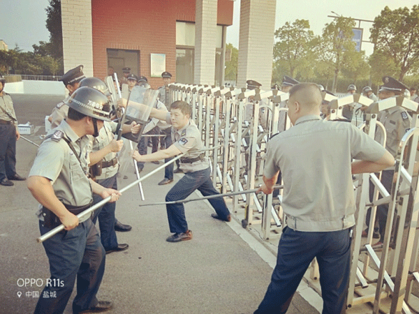 ●10月3日下午,公司保安部在盐城市第三小学组织开发区、盐南高新区不在岗学校保安员进行第五轮培训。蔡云生大队长结合学校保安员的工作特点,侧重规范个人形象、常规列队、门卫管理及应急处置、反恐防暴实操演练等科目。本轮培训以突出校园安全防范能力,以及保安员的综合素质和业务技能得到历练,为进一步打造平安校园,筑牢校园安全防线。