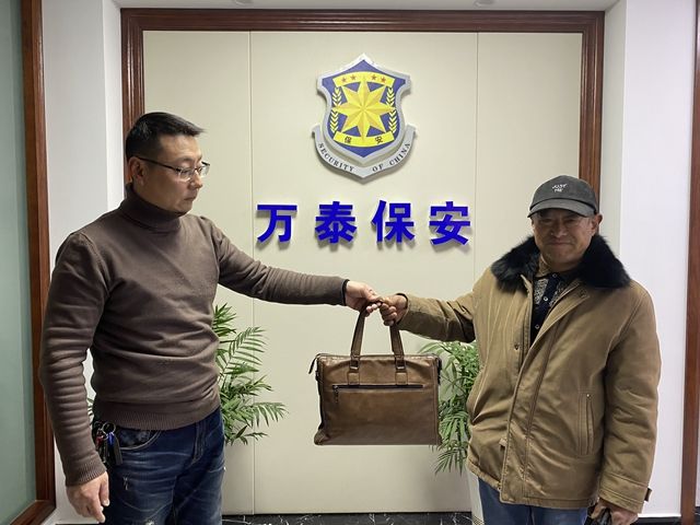 1月19日晚,盐城万泰保安公司巡防队员蔡长胜在巡防途中,捡到一只公文包,后设法联系上失主。21日下午,失主取回了公文包。
