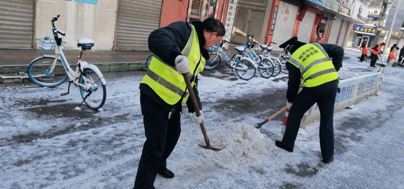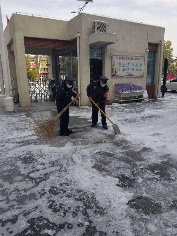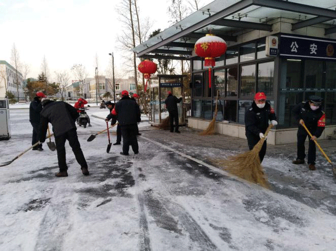 2月15日,一场大雪如约而至。面对气温骤降、风雪交加的恶劣天气,我公司立即启动疫情期间恶劣天气防控预案,为确保雪天出行安全,400多名保安冒雪坚守岗位,为客户单位进行扫雪铲冰服务,无丝毫松懈,同时做好人员的进出登记工作,坚决打赢疫情防控阻击战。