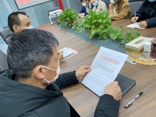 ●3月20日,公司党支部开展基层党组织统一活动日学习,会上,支部书记传达全区组织工作会议精神;组织党员学习市《关于贯彻落实〈2019-2023年全国党员教育培训工作规划〉的细则实施》相关内容;带领党员群众观看全市疫情防控系列微视频。
