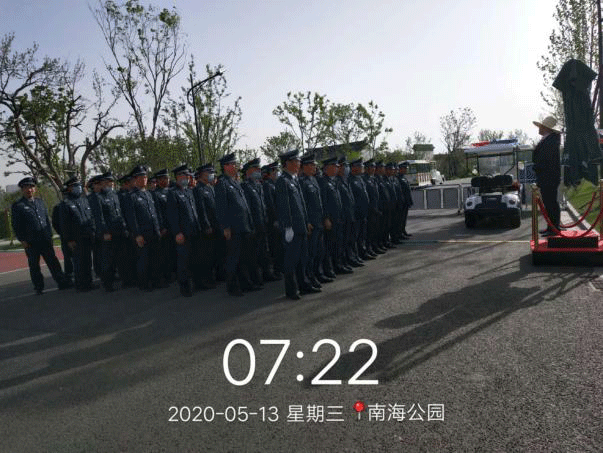●5月13日,保安部蔡队长利用早班集结时间组织南海公园保安员进行列队培训。