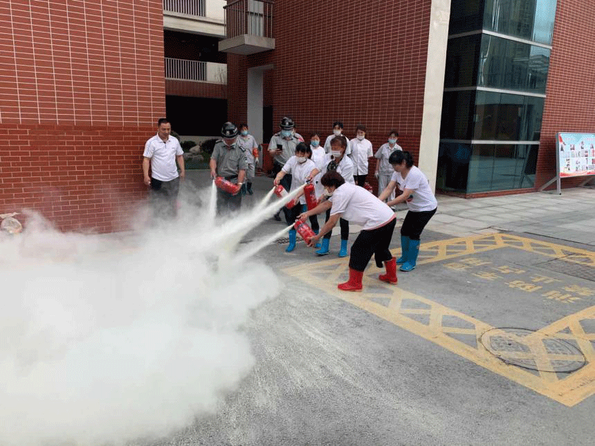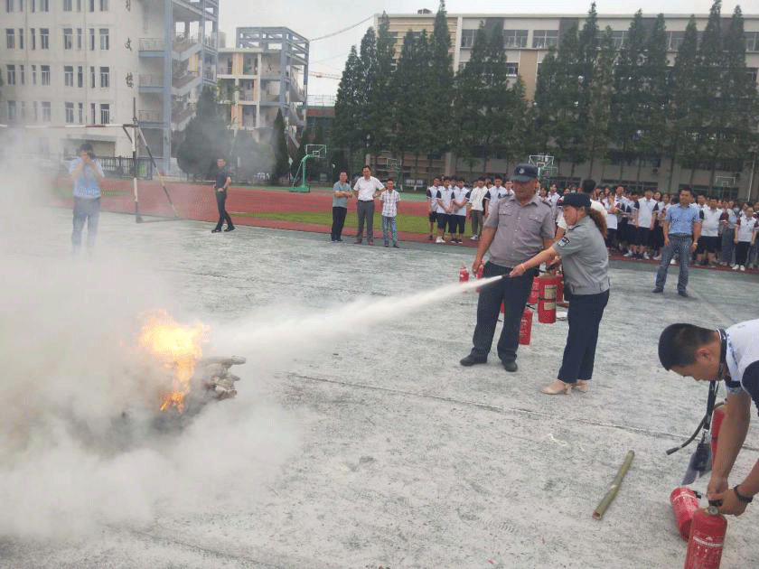 (6月16日,伍佑中学保安分队开展消防灭火演练)