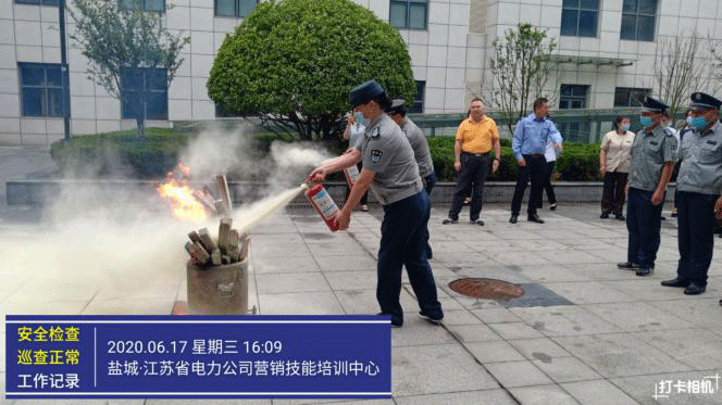 (6月17日,电力培训中心保安中队组织消防知识培训及灭火器使用演练)