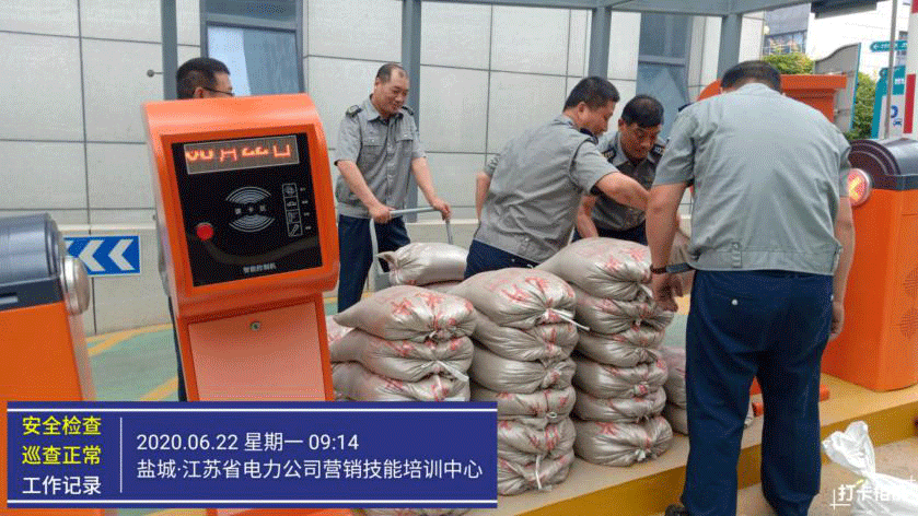 ●6月22日,电力培训中心保安中队为应对梅雨季节,积极应对,提前搬运沙土,安装临时挡水板,在防台防汛期间,确保客户单位地下车库车辆、配电房等重要设备安全。