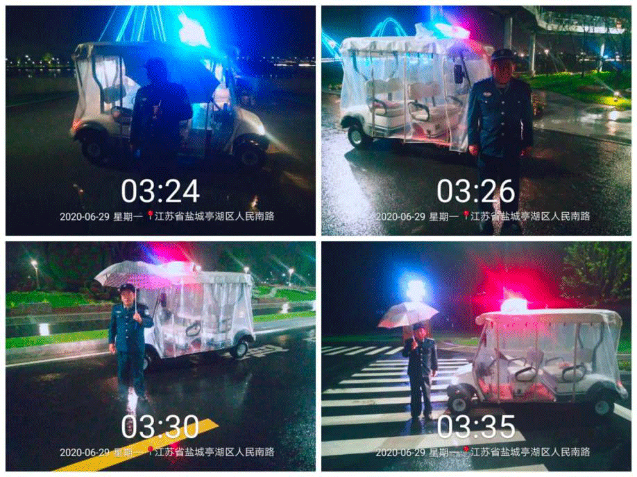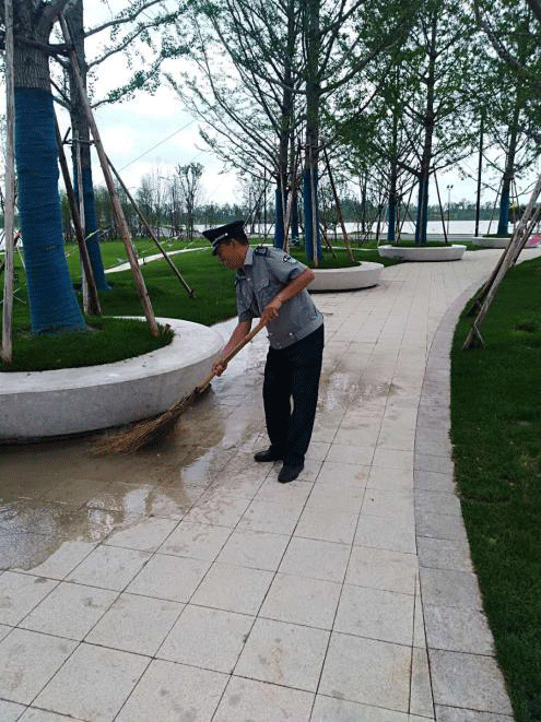 ●6月29日,气象台发布雷暴黄色预警,南海公园中队保安员坚持在恶劣的天气环境中坚守岗位,时刻关注着雷暴天气对执勤点的影响,一丝不苟地开展安全巡查工作,及时发现并消除潜在的安全隐患,第二天一早及时开展扫水排涝工作,确保保障客户单位的权益不受侵害。
