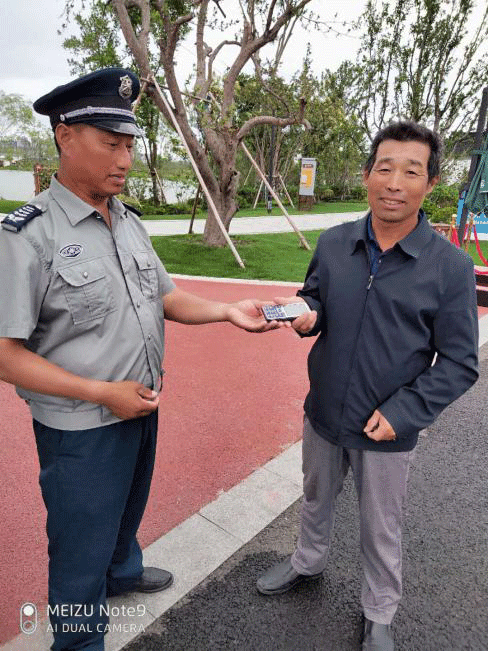 ●6月29日,南海公园队员徐仁亮在执勤期间巡逻至一号岗时捡到手机一部,他立即通过对讲机将情况报告保安室,最终将手机交换到失主手中。