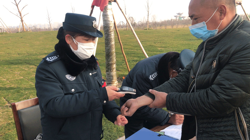 在医院大门,他带领队员们坚持对外来车辆及人员进行严格的检查和体温测量,对出入人员进行详细的信息登记,严格做好出入记录。冰天雪地,风吹雨淋,坚守一线岗位,构筑起院内疫情防控的第一道关口。