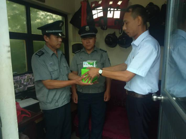 进入七月以来,盐城市进入了高温酷暑季节,为了确保一线保安员的身体健康,更好地开展日常安保工作,近日,公司业务部副总宋义军同志、保安部大队长蔡云生同志深入各个驻点单位,看望慰问辛勤工作在一线的保安员,为他们送去了矿泉水、风油精及清凉油等防暑降暑物品,对高温下坚守岗位的队员表示亲切问候,感谢他们的辛勤付出以及为公司所做的贡献,并叮嘱大家高温天气要注意防暑降温,保重身体。