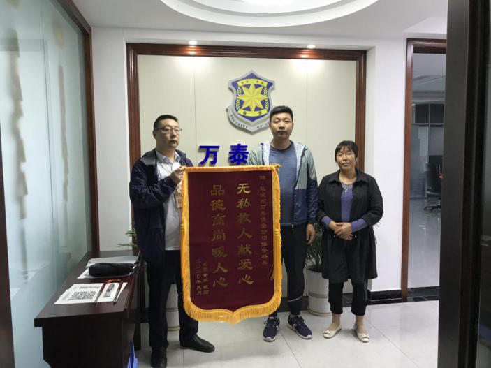 9月22日一早,小女孩的父亲与奶奶来到了盐城万泰保安服务有限公司办公室,连声感谢,并送来了锦旗。