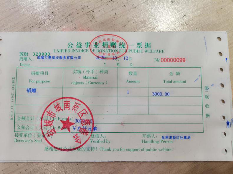 长期以来,盐城万泰保安公司工会一直走在爱心公益的前沿。2020年10月10日,在开展的“传承传统美德,奉献一片爱心”活动中,公司党支部、工会将3000元助学助残资金送到娱乐社区部分困难户手中,帮助缓解困难,有力地促进社区共建,为民生改善、社会和谐贡献一份力量。