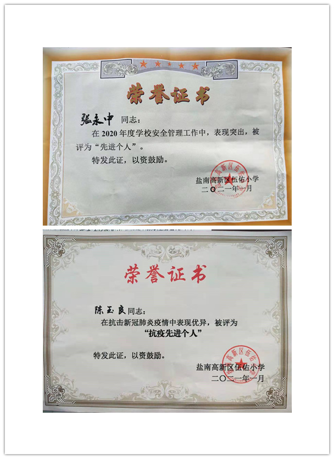 ●1月28日,我司张永中、陈玉良二名同志收到驻点单位的表彰并获得荣誉证书。