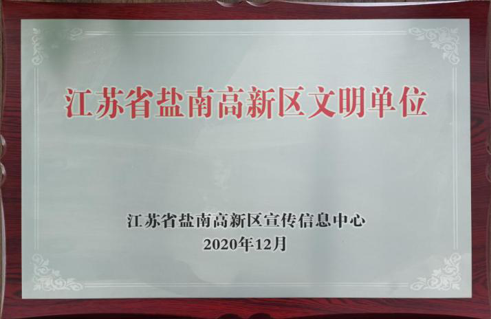 ●1月4日,盐南高新区宣传信息中心(盐南高新区宣〔2020〕12号)文件公布,关于命名表彰2019—2020年盐南高新区文明镇、文明村、文明单位文明社区的决定。我公司被授予“区级文明单位”荣誉称号。
