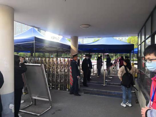 ●10月26日,学海路初级中学全体保安着装整齐,认真履职,接受省厅领导对疫情防控及门卫管理工作检查指导。