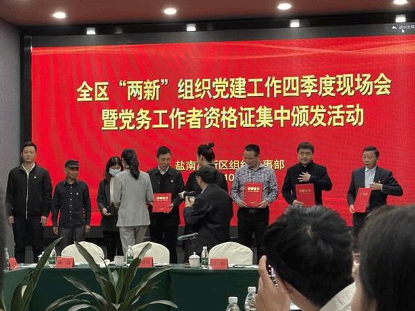 ●10月18日,党支部宋书记参加盐南高新区组织人事部开展全区“两新”组织党建工作四季度现场会暨党务工作者资格集中颁发活动。