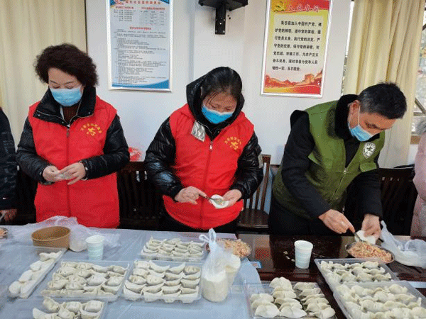 俗话说:“冬至不端饺子碗,冻掉耳朵没人管”,为弘扬中华传统文化,推动与社区文明共建传统美德,12月18日下午盐城万泰保安公司积极参与娱乐社区开展“冬至送温暖,真情暖民心”包饺子比赛,公司党员、志愿者积极参与,同时邀请了退伍军人、居民家庭代表等一同参与,大家热热闹闹包饺子。在包饺子前大家洗好手、带好口罩、做好卫生工作。本次包饺子活动准备了白菜猪肉馅和芹菜猪肉馅等,在包饺子过程中大家可谓是各显神通,经过30分钟比赛,关亚季军产生了,每个人都收获了满满的成就感。最后志愿者还将包好的饺子分装送到社区高龄老人、空巢老人、残疾人、低保户家庭。