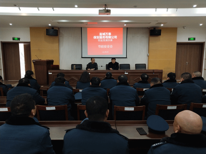 ●1月28日,副总宋义军同志保安部在盐龙湖水库会议室召开春节期间疫情防控、消防和安全生产工作部署会议,会上,安排部署了春节期间安全生产各项工作,要求全体队员牢固树立责任意识,强化责任担当,严格执行常态化疫情防控措施,做好门卫管理工作,确保安全。