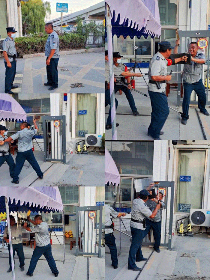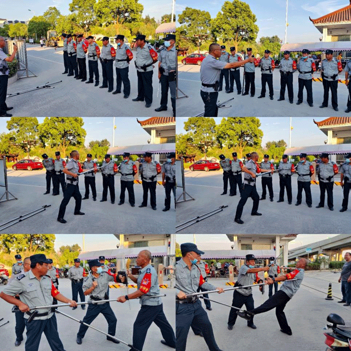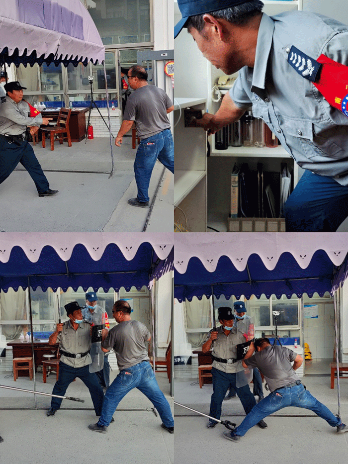 (防卫器材的操作及队员之间如何相互配合阻击歹徒)