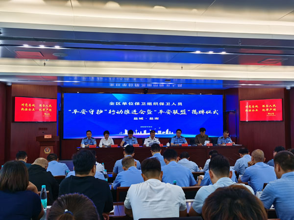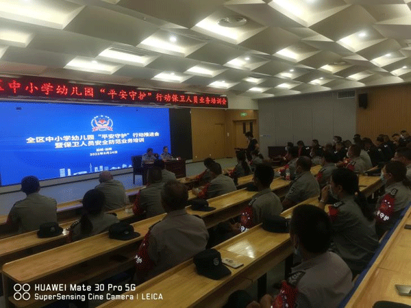 ●8月24日,保安部蔡队长组织盐南高新区各驻点校园保安员参加盐南高新区中小学、幼儿园“平安守护”行动推进会暨保卫人员安全防范业务培训。
