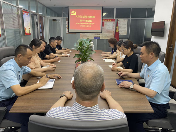●8月20日,公司党支部开展基层党组织统一活动日学习,支部书记带领大家学习《习近平谈治国理政》第四卷和习近平总书记在省部级主要领导干部“学习习近平总书记重要讲话精神,迎接党的二十大”专题研讨班上的重要讲话精神;学习贯彻习近平总书记关于安全生产重要论述、重要指示批示精神,全面落实中央和省市委关于安全生产工作决策部署,切实履行安全生产职责学习贯彻省委工作会议、市委八届三次全会、全省组织工作重点任务推进会和全市组织部长座谈会暨组织工作重点任务推进会精神;组织党员认真学习《中国共产党支部工作条例(试行)》;组织收看《榜样的力量》第2集及《中国共产党组织工作条例》学习系列微动漫;最后提出,公司全体党员干部要带头参与全文明城市创建,开展创卫知识宣传、爱国卫生运动;开展“喜迎二十大·阅读颂辉煌”主题读书等活动。