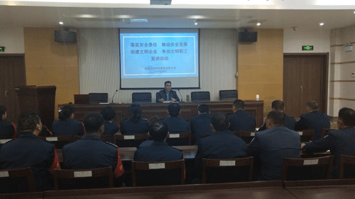●10月18日下午,保安部在盐龙湖水库会议室开展“落实安全生产,推动安全发展,创建文明企业,争当文明职工”宣讲活动,通过活动,使全体队员进一步提高全社会安全生产与文明素质意识,从而使得人人都成为安全的宣讲员、文明的责任人和践行者。
