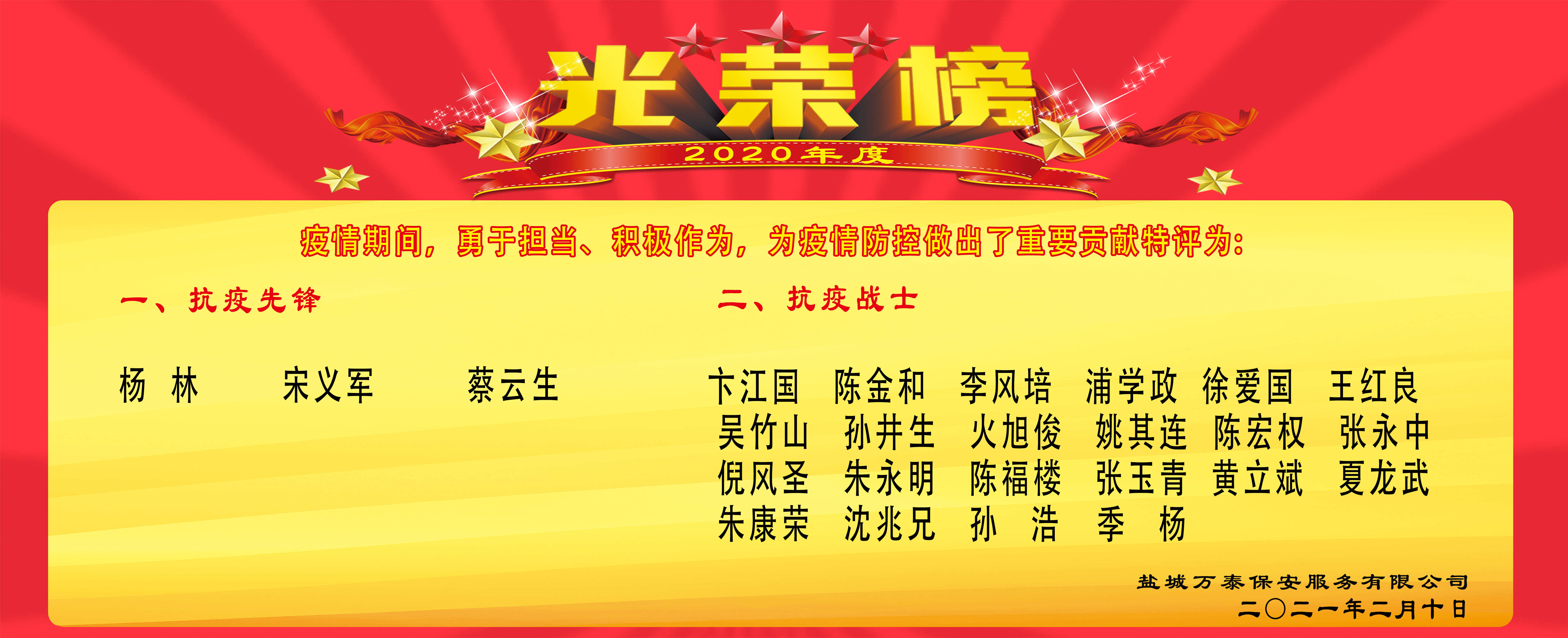 2020年度抗疫先锋、抗疫战士